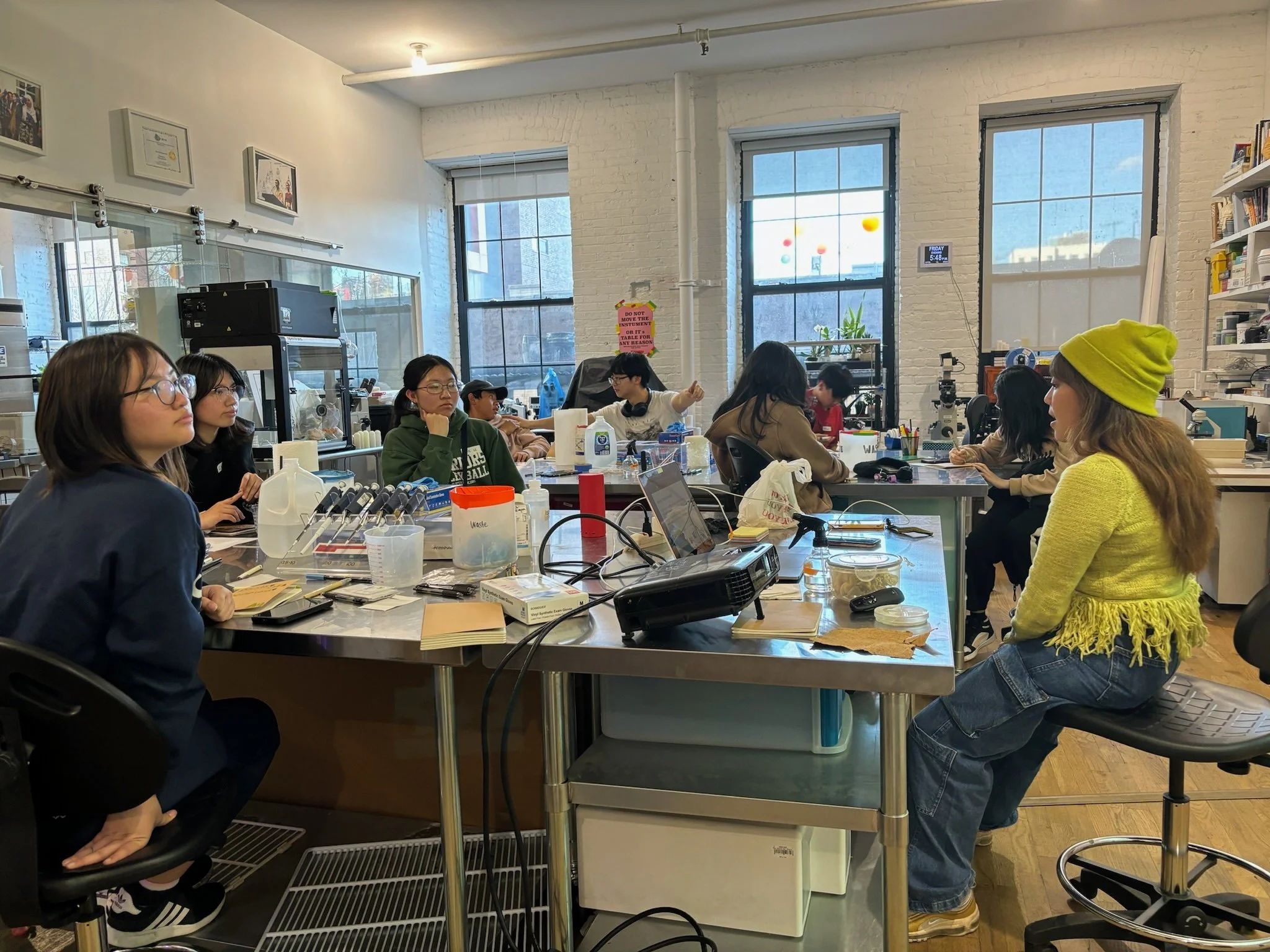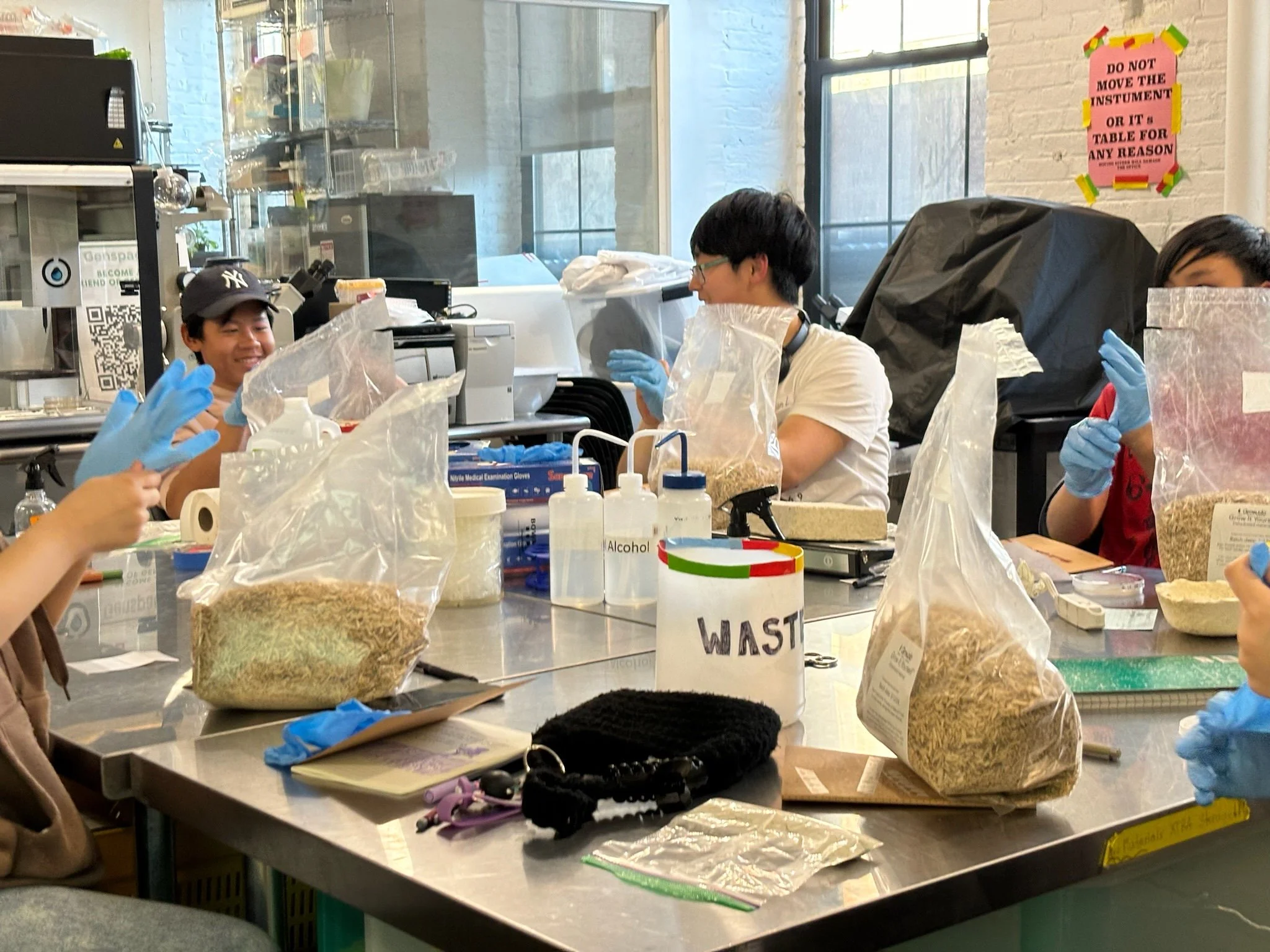 The first week was held at Genspace, a community biology lab in Sunset Park. During the orientation, students learned about fungi, aseptic lab techniques, mushroom cloning, and activated their own mycelium using a Grow.bio Grow it Yourself kit. We then celebrated the start of the internship with a pizza party.