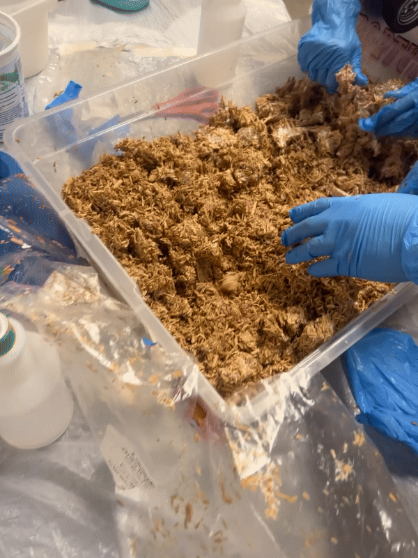 During week 2, we focused on sustainability and biomaterials, which was held at ArtBuilt Studio. We started with a lecture on mycelium followed by a speaker panel of biodesigners. Then the students brainstormed and prototyped their own mycelium sculptures. The day ended with them packing their mycelium.